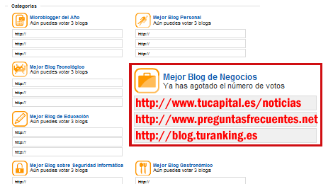 De momento estamos entre los 25 primeros blogs de negocios más votados.