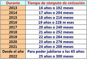 Este aumento será progresivo hasta el año 2022 a razón de 1 año adicional a partir del 2013, tal y como se muestra en la tabla adjunta.