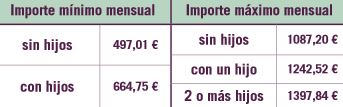 Existen unas cuantías mínimas y máximas de la prestación que están en función del número de hijos y del Indicador Público de Renta de efectos Múltiples (IPREM) existente cuando se inició la prestación.