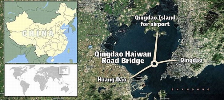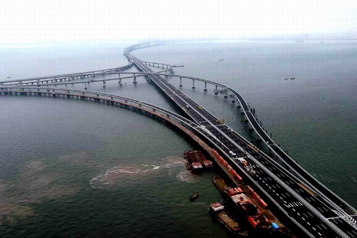 China ostenta el honor de tener el puente más largo del mundo, el Jiaozhou Bay que conecta la ciudad portuaria Qingdao, con una isla y el suburbio industrial de Huangdao.