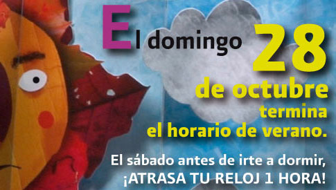 La próxima madrugada de Domingo día 28 de Octubre habrá que retrasar una hora nuestro reloj a las 3 de la mañana, y pasará a ser a las 2 horas.