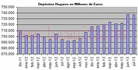 - Son más de 42.000 millones de euros más que julio de 2012, que alcanzó los 694.705 millones de euros.