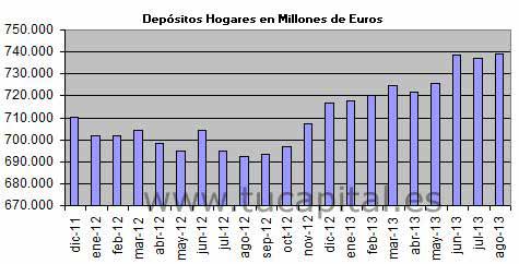 Sin embargo, los hogares españoles siguen confiando en estos productos, así según datos del Banco de España, en el mes de agosto de 2013, los hogares españoles marcan un nuevo máximo, con un total de 738.939 millones de euros en depósitos bancarios.