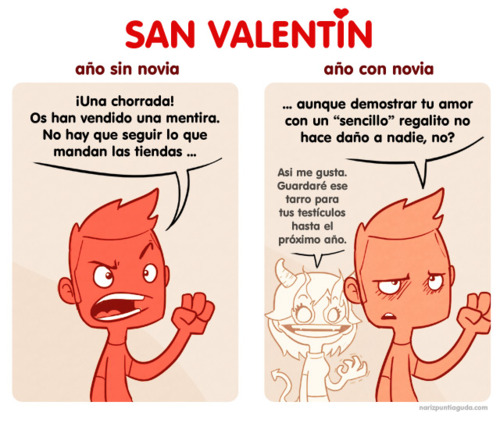 Para el Día de San Valentín, un poco de humor!Hoy es el Día de San Valentín. A unos os pillará con pareja, a otros sin ella, otros buscando, y otros que acabarán encontrando, …pero para todos en este día, allá va un poquito de humor 😉