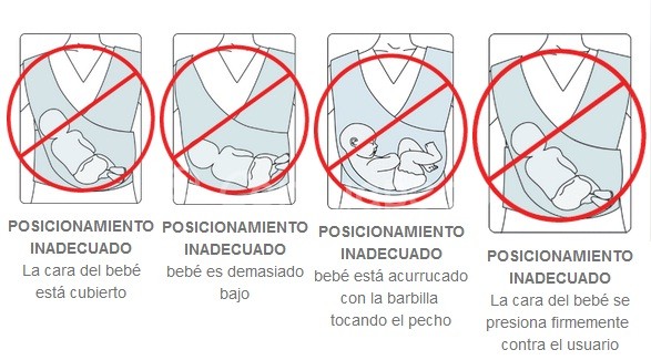 La doctora forense que realizó la autopsia al bebé, determinó que el pequeño falleció por asfixia debido a su mala postura, por llevarle en alguna posición como las que puedes ver en los ejemplos de la imagen siguiente: