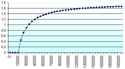 Por lo tanto, la rentabilidad real de este producto depende de la cuantía de la inversión, dado que los primeros 15.000 euros no se remuera. De esta forma, según se ve en la siguiente gráfica, que salvo inversiones muy muy grandes (100.000 euros) el tipo de interés está por debajo del 1.75% TIN.