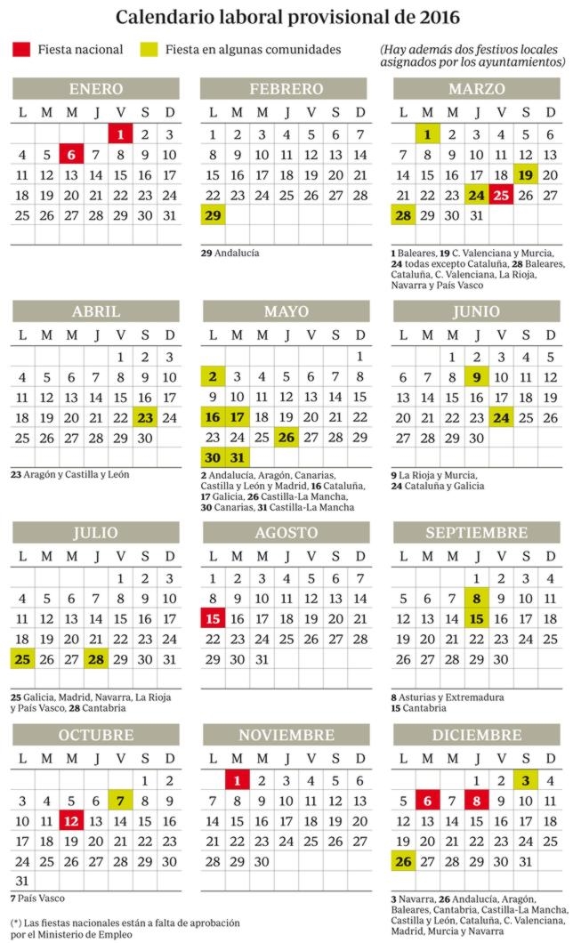 Te dejamos el Calendario Laboral del 2016 provisional para que puedas ir echando un vistazo.