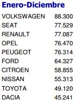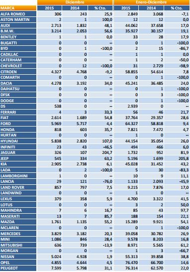 Os dejamos de todas formas la tabla completa por si queréis ver el número total de unidades vendidas de otras marcas en 2015 (Fuente ANFAC):