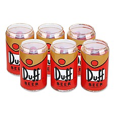 6 vasos diseñados con la forma de las latas de Duff Beer, la marca de cerveza preferida por Homer Simpson. |