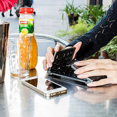 Trabaja con tu smartphone o tu tablet donde quieras con este excelente teclado portátil que se pliega y cabe en cualquier sitio. |