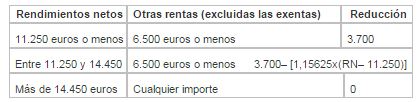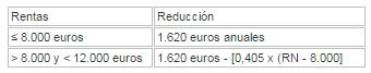 Los contribuyentes con rentas sean inferiores a 12.000€ reducirán su rendimiento neto en las siguientes cuantías: