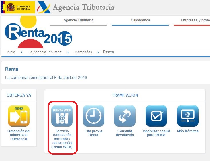 (Disponible sólo a partir del día 6 de abril, fecha de inicio de la Campaña de la Renta 2015)