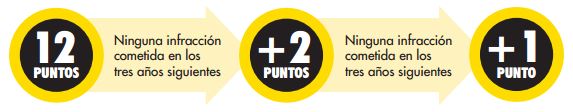 Transcurridos 3 años más sin cometer infracciones que conlleven la retirada de puntos, se recibe como bonificación otros 2 puntos, alcanzándose los 14 puntos.