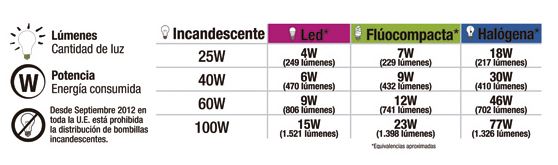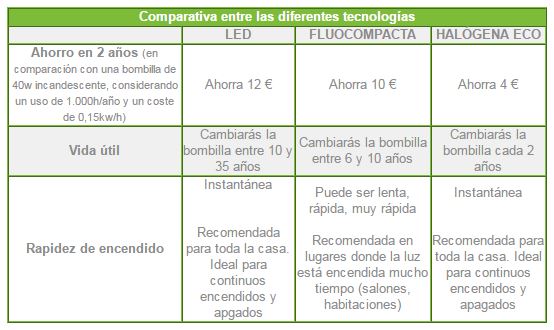Sí a los LEDS y bombillas de bajo consumo. No a los halógenos