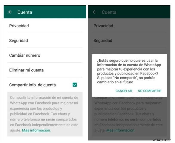 Con esta acción no impedirás del todo que Facebook recopile información de tu cuenta de WhatsApp, pero al menos evitarás que la use con fines publicitarios.
