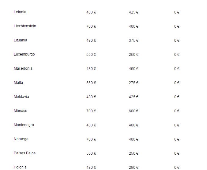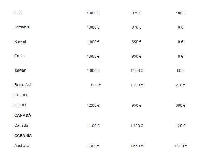 Vemos qué cuantía mensual de paga corresponde en función del país de destino al que vayas.