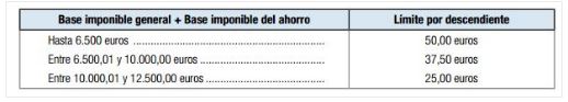 En cualquier caso la base imponible de los contribuyentes no podrá superar los 25.000€ en declaración conjunta ni los 12.500€ si se hace individual o los 30.000 y 40.000€ respectivamente para las familias numerosas.