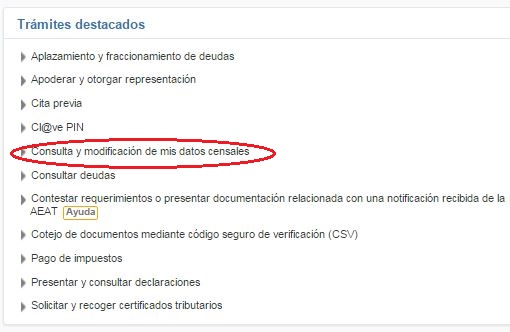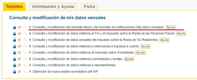Pincha sobre «Consulta y modificación del domicilio fiscal y del domicilio de notificaciones (Mis datos censales)»