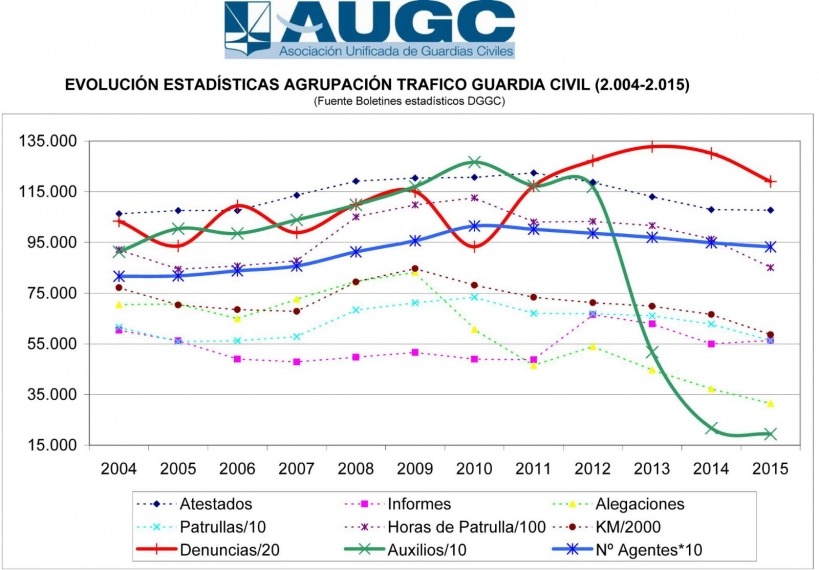 Así lo ha denunciado la Asociación Unificada de Guardias Civiles (AUGC) cuya gráfica elaborada a partir de los boletines estadísticos de la Dirección General de la Guardia Civil no da lugar a dudas.