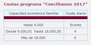 La cuota semanal que deben pagar las familias estará en función de la capacidad económica familiar, teniendo el siguiente coste: