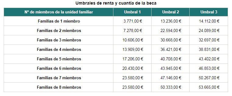 - Si la renta de la unidad familiar supera el umbral 3, no habrá derecho a beca.