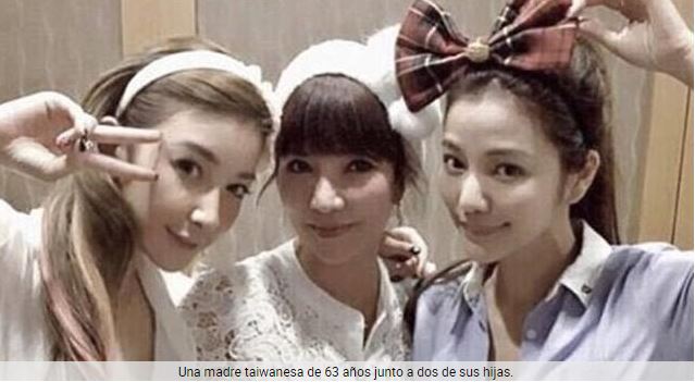 - Lure Hsu (41) a la derecha, Sharon (36) a la izquierda, su madre (63) en el centro.